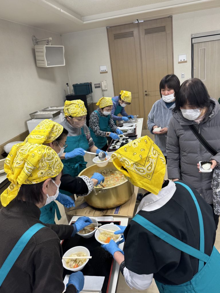 町内外の皆様から素敵なカレンダーや手帳が沢山集まり、今年も開場とともに多くの方が来場し大賑わいでした。購入していただいた方には和寒町ボランティアクラブの皆さんが提供して下さいました豚汁とおにぎりをいただき、身体もこころもあたたまりました。