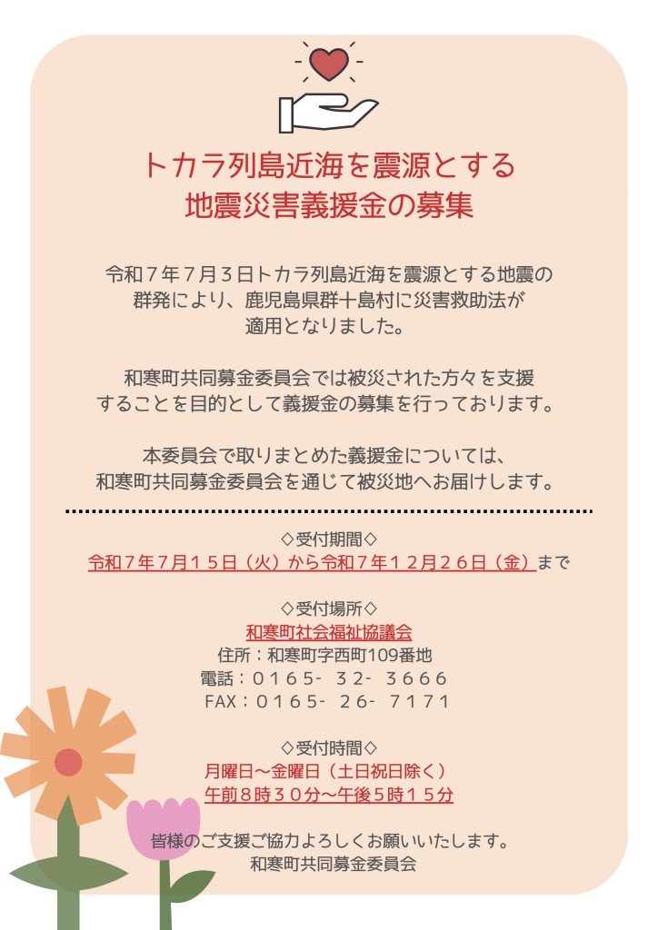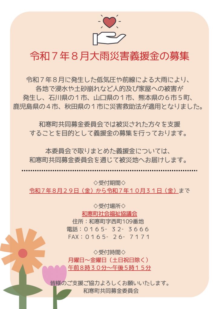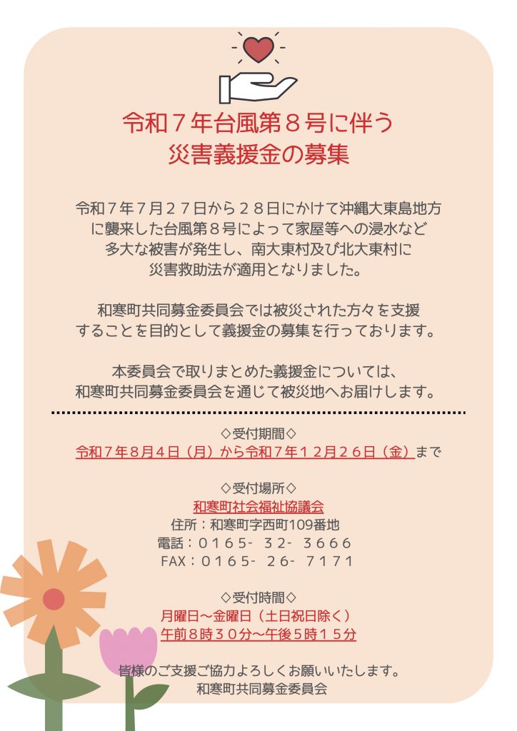 皆様から頂いた義援金につきましては和寒町共同募金委員会を通じ
